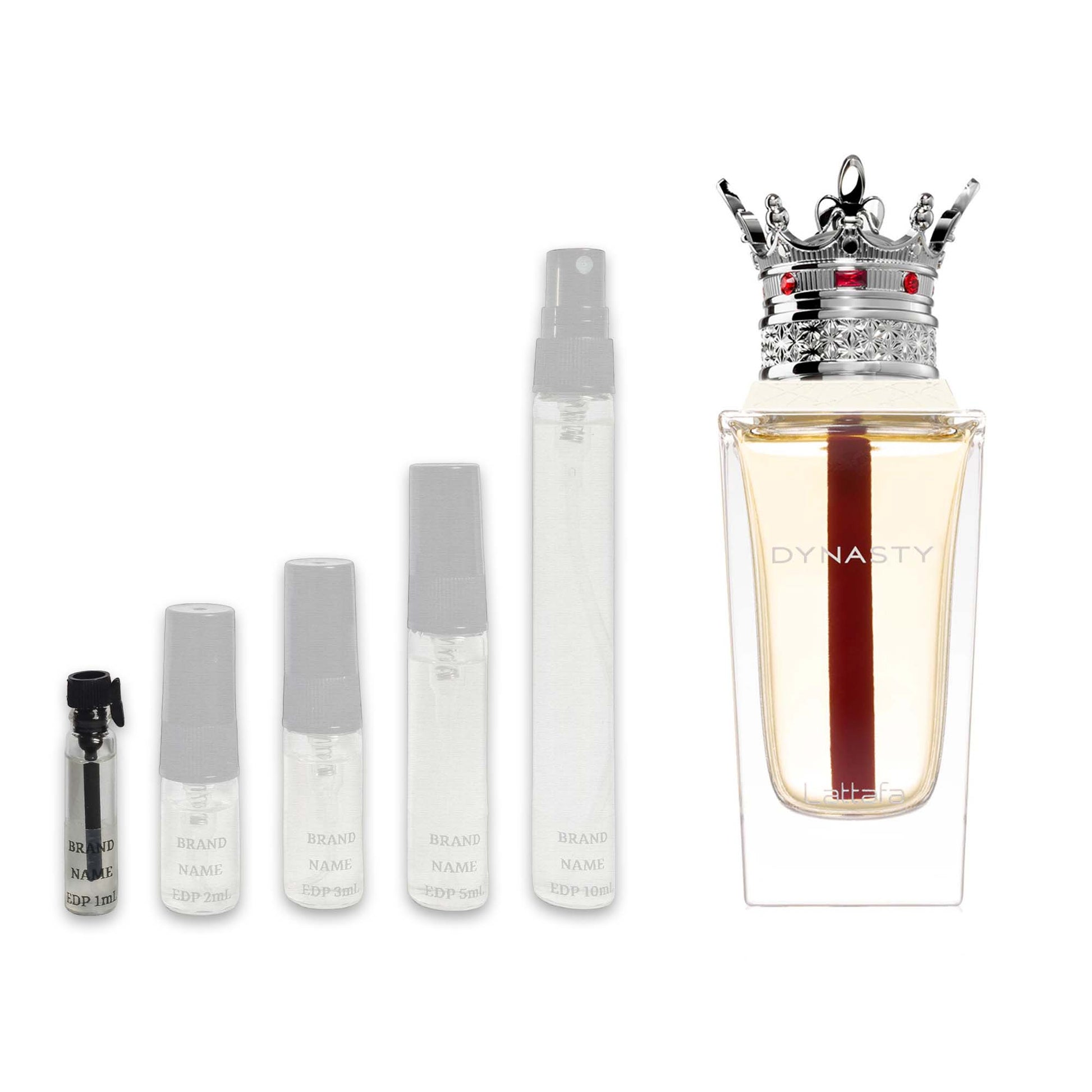 Lattafa Dynasty Eau de Parfum Sample is a Woody Spicy fragrance for women and men. This is a new fragrance. Dynasty was launched in 2025. The nose behind this fragrance is Alex Lee.