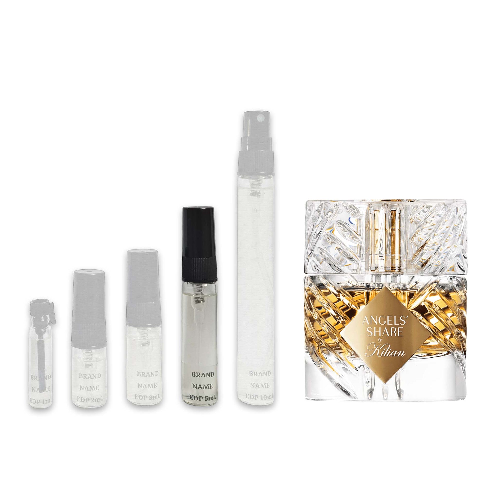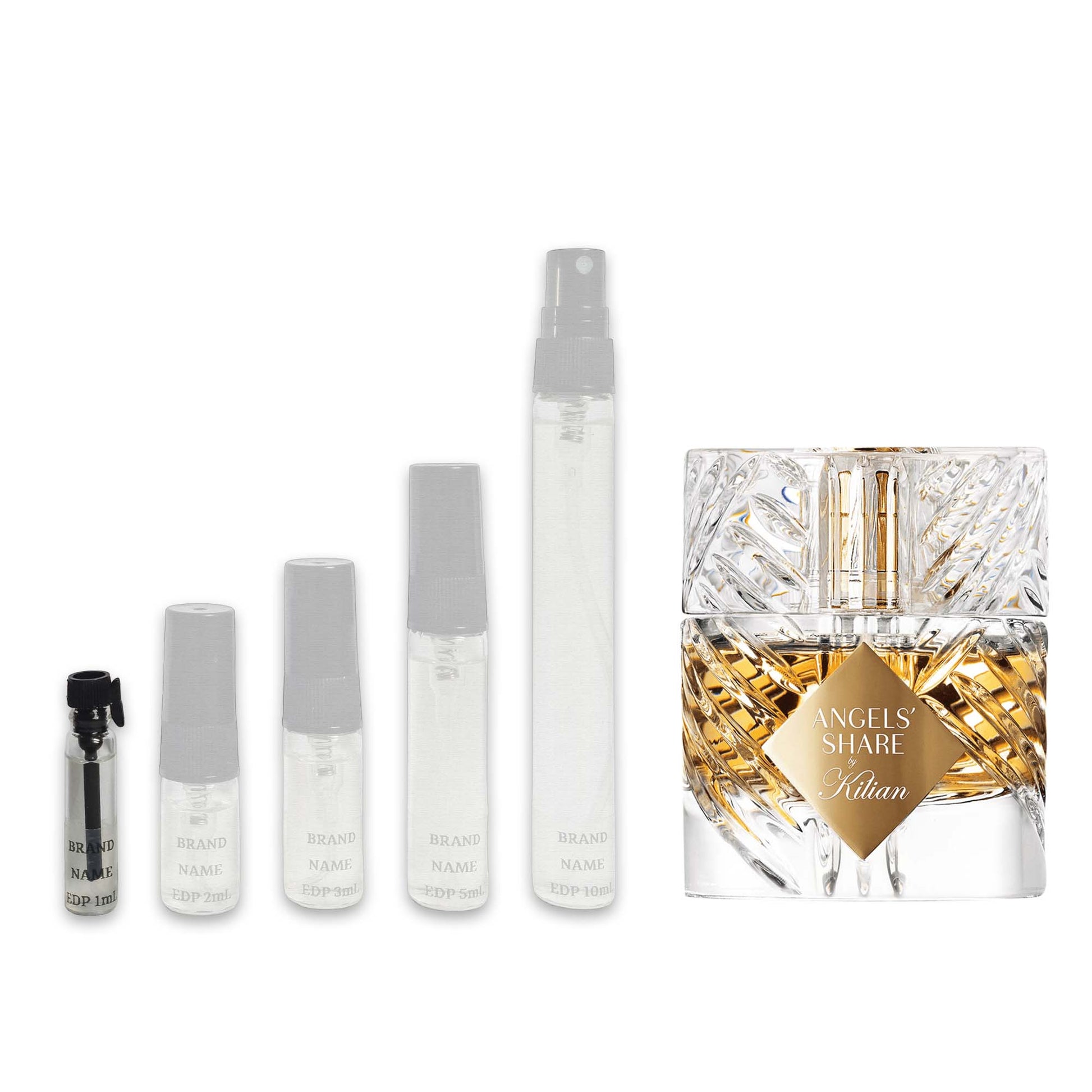 Angels' Share van Kilian vangt de essentie van Cognac en geeft de drank een natuurlijke karamelkleur. Het begint met cognacolie, harmonieus gemengd met eikenabsoluut, kaneelessence en tonkaboonabsoluut. De geur culmineert in blijvende tonen van sandelhout, praline en vanille, wat een verrukkelijke finish creëert die een unieke ervaring is die bedoeld is voor het goddelijke.